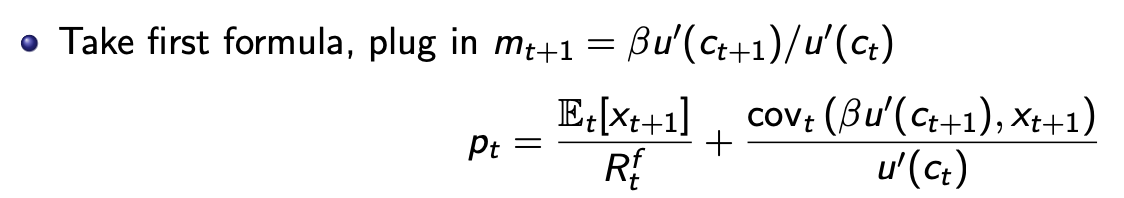 pt is lowered (raised) if payoff covaries positively (negatively) with future consumption ct+1