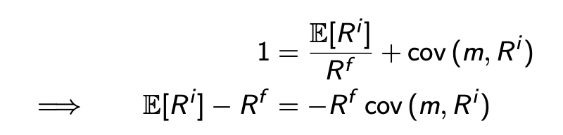 This provides us with a convenient formula for the (expected return) risk premium Risk premium is positive for assets that comove negatively with the SDF
