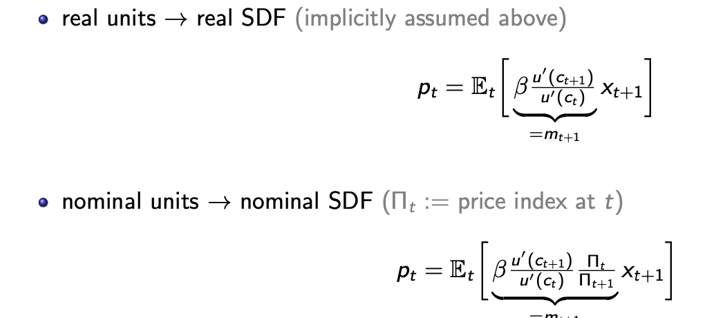 We have assumed time-separable expected utility preferences, but this is not crucial → p = E[mx] can be derived from more general risk preferences