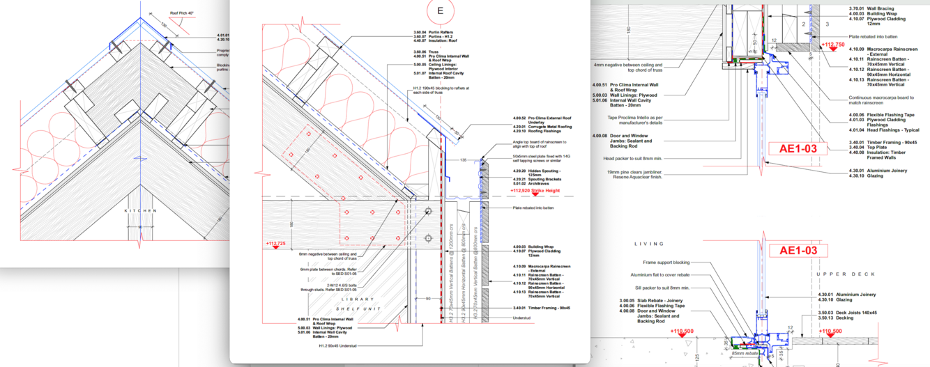 Discuss the properties of the materials selected, details of their use and options for detailing common junctions and penetrations.