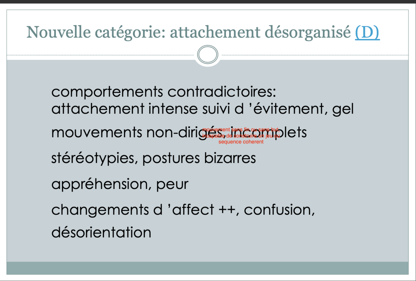 Il va faire preuve de comportement contradictoire: il a des attachement intenses suivi d’évitements