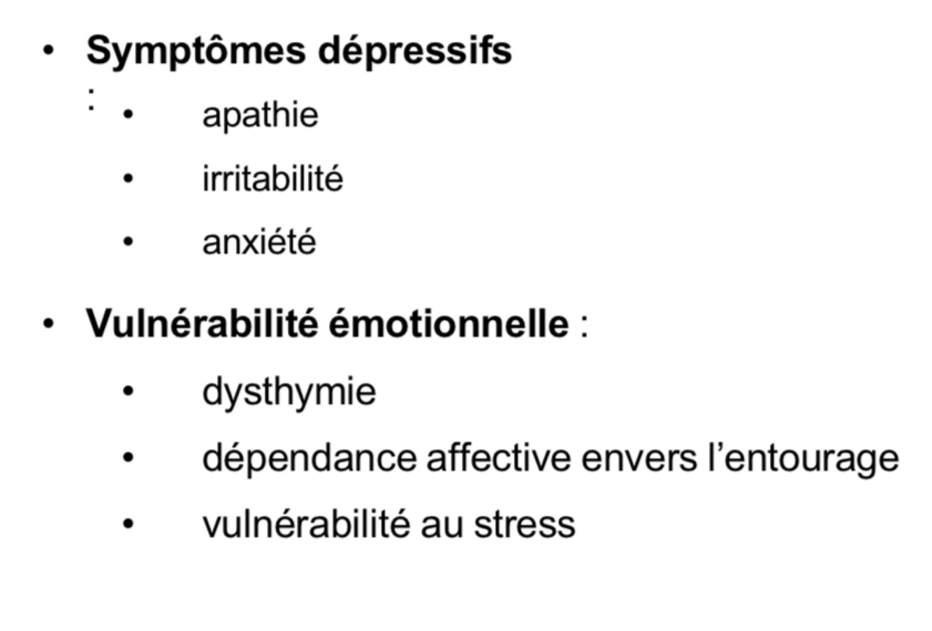 TCL + symptômes dépressifs —> troubles cognitifs sont amplifiés