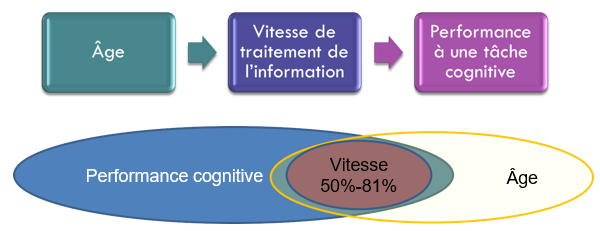 Ralentissement du traitement de l’info = variable médiatrice. explique 50-80% de la vairance dans la performance cognitive des PA