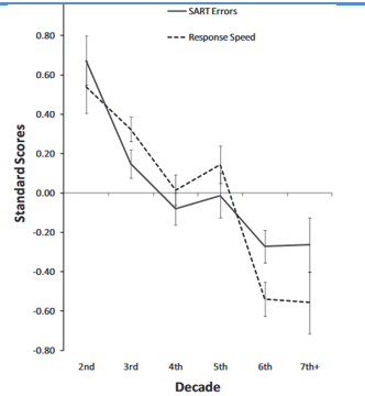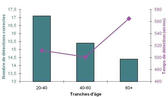 avec l’âge, la précision (taux d’erreur) augmente, et la rapidité (temps de réaction) diminue