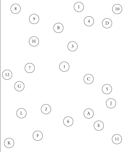 Avec crayon, relier les chiffres aux lettres en allant du plus petit au + grand, sans lever le crayon, le + rapidement possible (A, 1, B, 2, C, 3…). Flexibilité attentionnelle pcq faut alterner de manière croissante entre chiffres et lettres