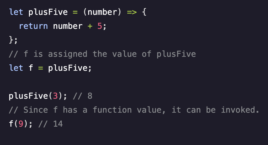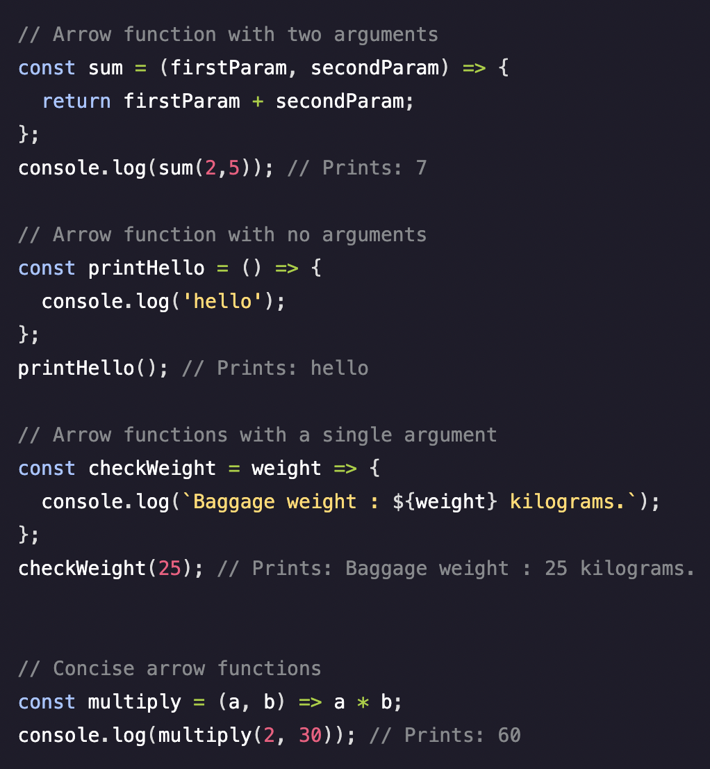 • Arrow functions with a single expression can use the concise function body which returns the result of the expression without the return keyword.