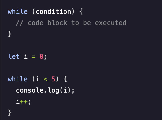 The while loop creates a loop that is executed as long as a specified condition evaluates to true. The loop will continue to run until the condition evaluates to false. The condition is specified before the loop, and usually, some variable is incremented or altered in the while loop body to determine when the loop should stop.