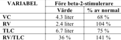 Fråga: Finns det något i tabellen som talar för KOL?