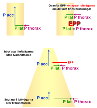 Vid sjukdom, t ex KOL, blir luftvägarna smalare pga slem och svullnad. Detta gör att EPP flyttas neråt. Om EPP flyttas så långt ner att broskringarna tagit slut kommer luftvägarna att kollapsa ovanför EPP.