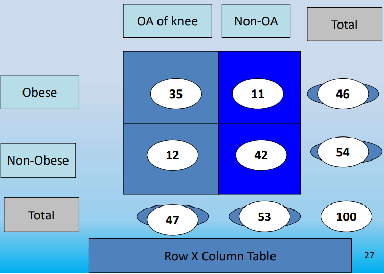 Example: To determine the relationship between Osteoarthritis (OA) & Obesity in Region A