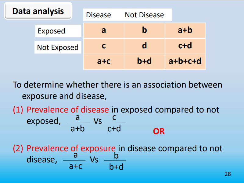 A population is defined as the presence OR absence of exposure & the presence & absence of diseases for each individual is determined at the same time and compared
