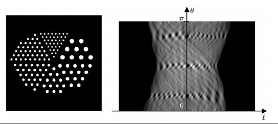 • An image of g(l,\theta) with l and \theta as rectilinear coordinates is called a sinogram.