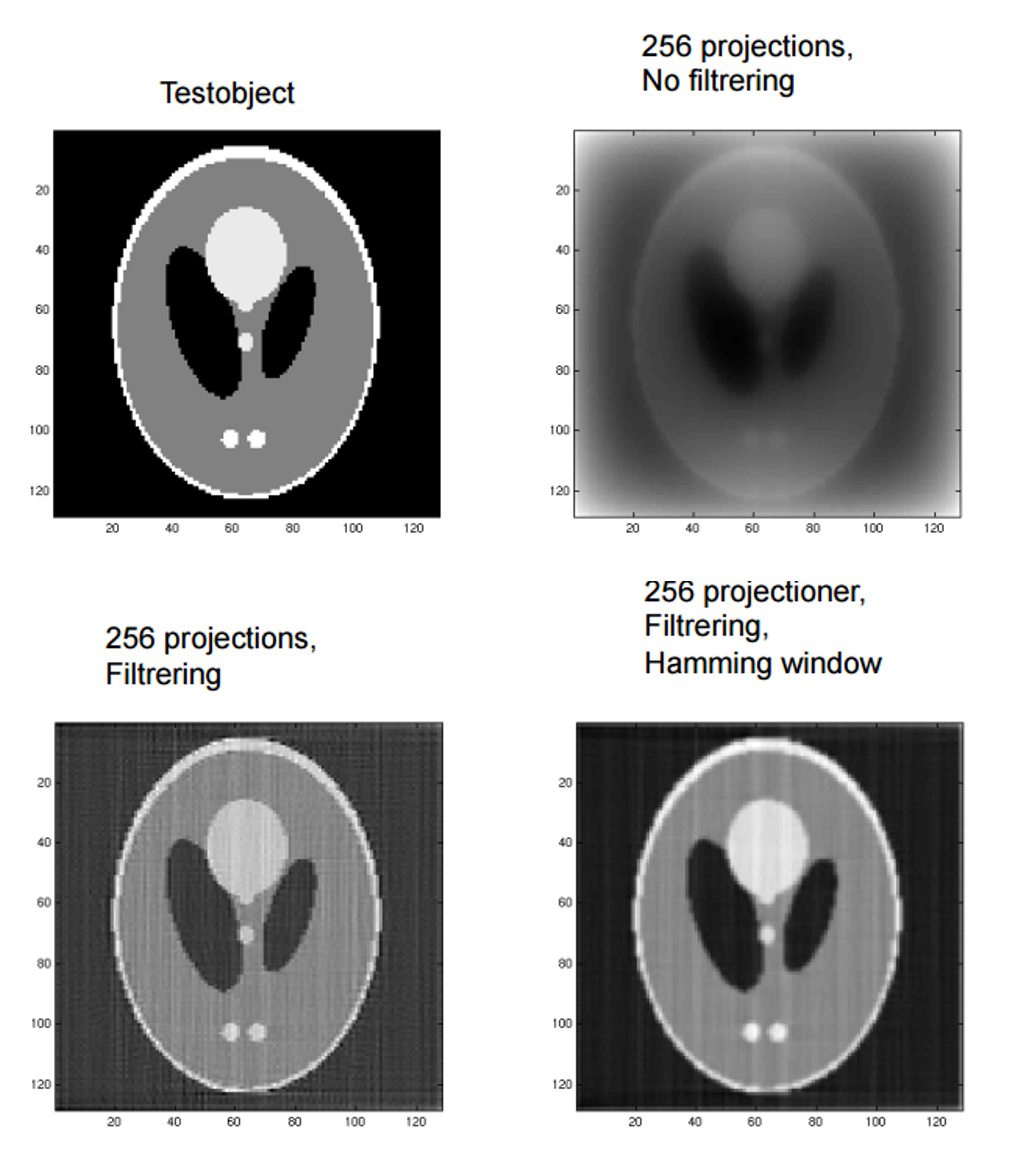 Reconstructing images using filtered back projection with a HP-rampfilter