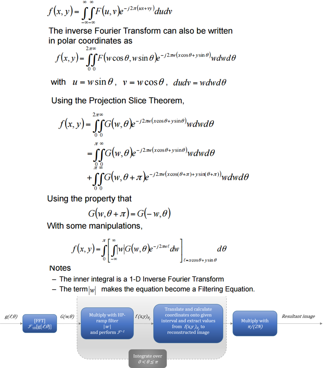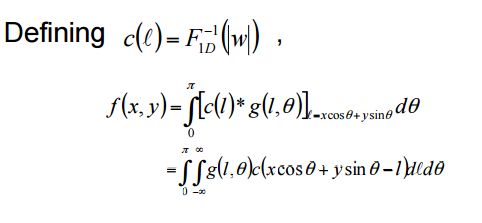 • f(x,y)=int(0->\pi)[F1D1(|w|)*g(l\theta)] l=xcos(\theta)+ysin(\theta)d\theta