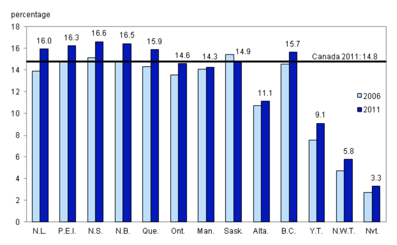 Living arrangements of seniors in Canada, aged 85 and over (2011)