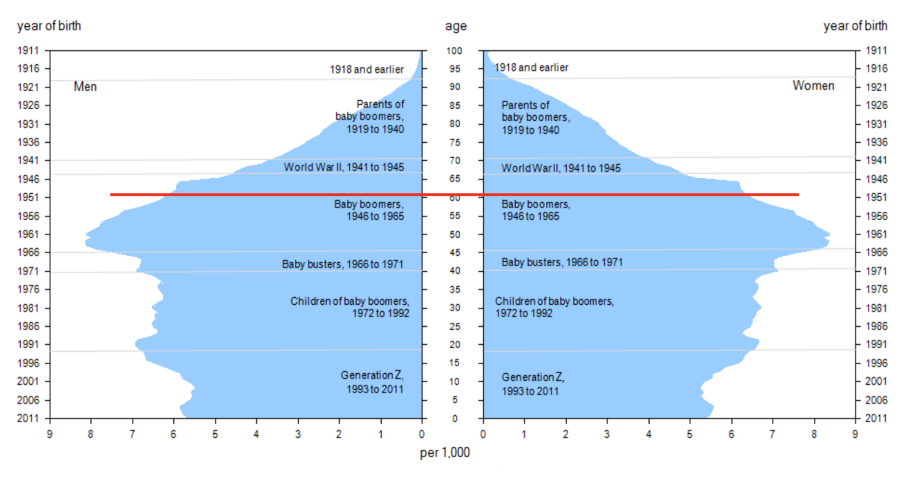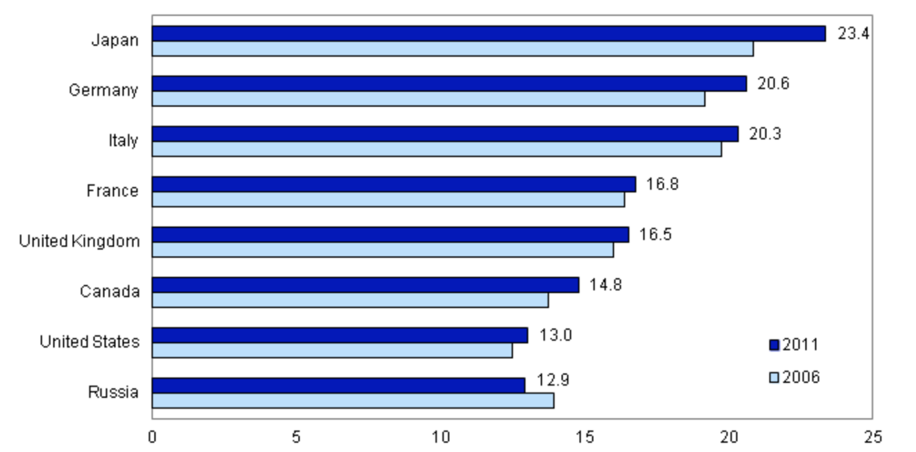 Canadians are generally younger but Japan, Germany and Italy typically have longer lifespans