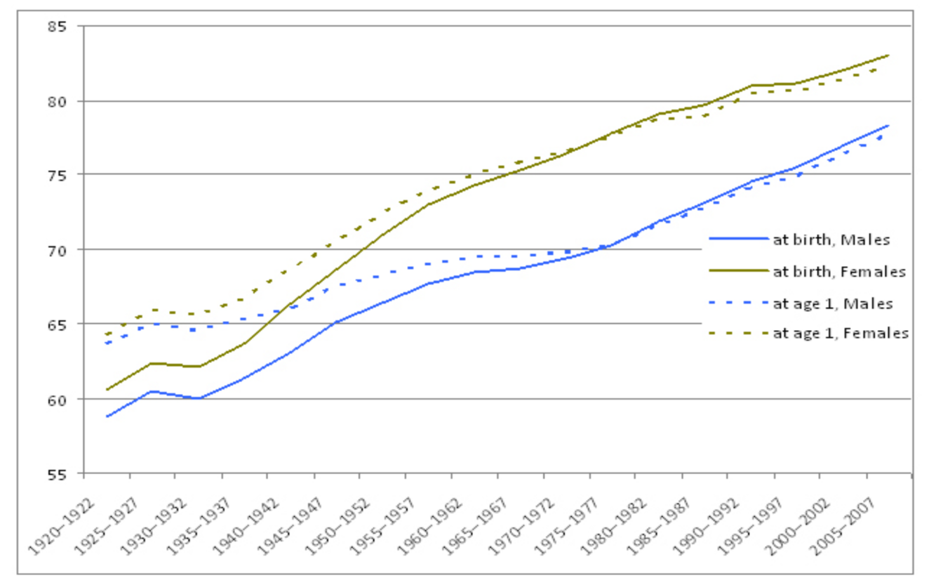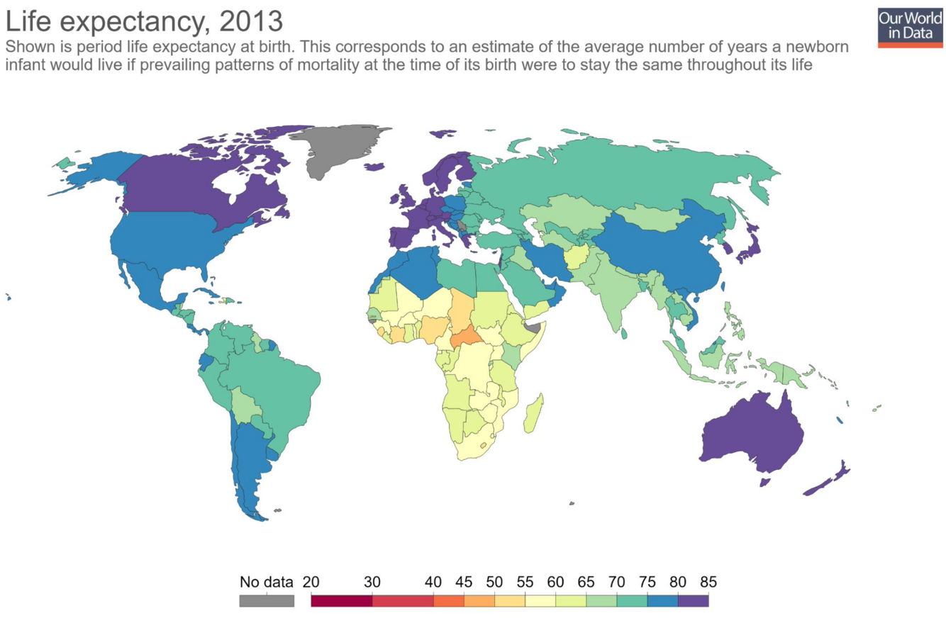 since 1950 have seen a 20 yr global life expectancy increase (more medical advancements, better food supply, public health care etc.)