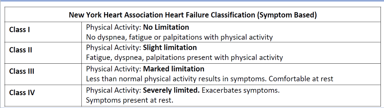 NY heart association HF classes