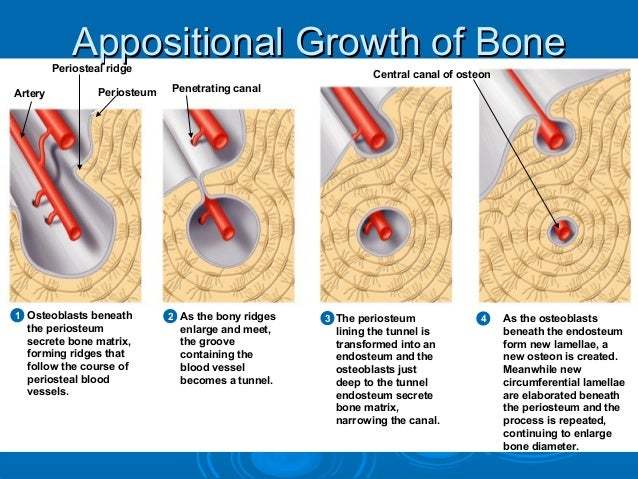 how does appositional growth of bone occur? (to the side)
