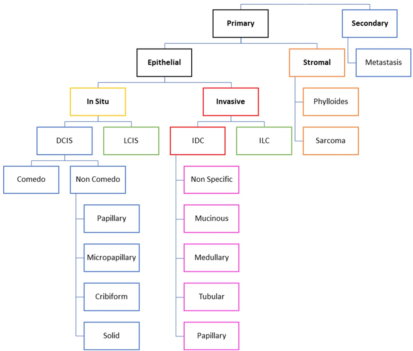 Precursor lesion of invasive breast cancer, a neoplastic proliferation of ductal epithelial cells confined to ductal-lobular system without invasion through the basement membrane.