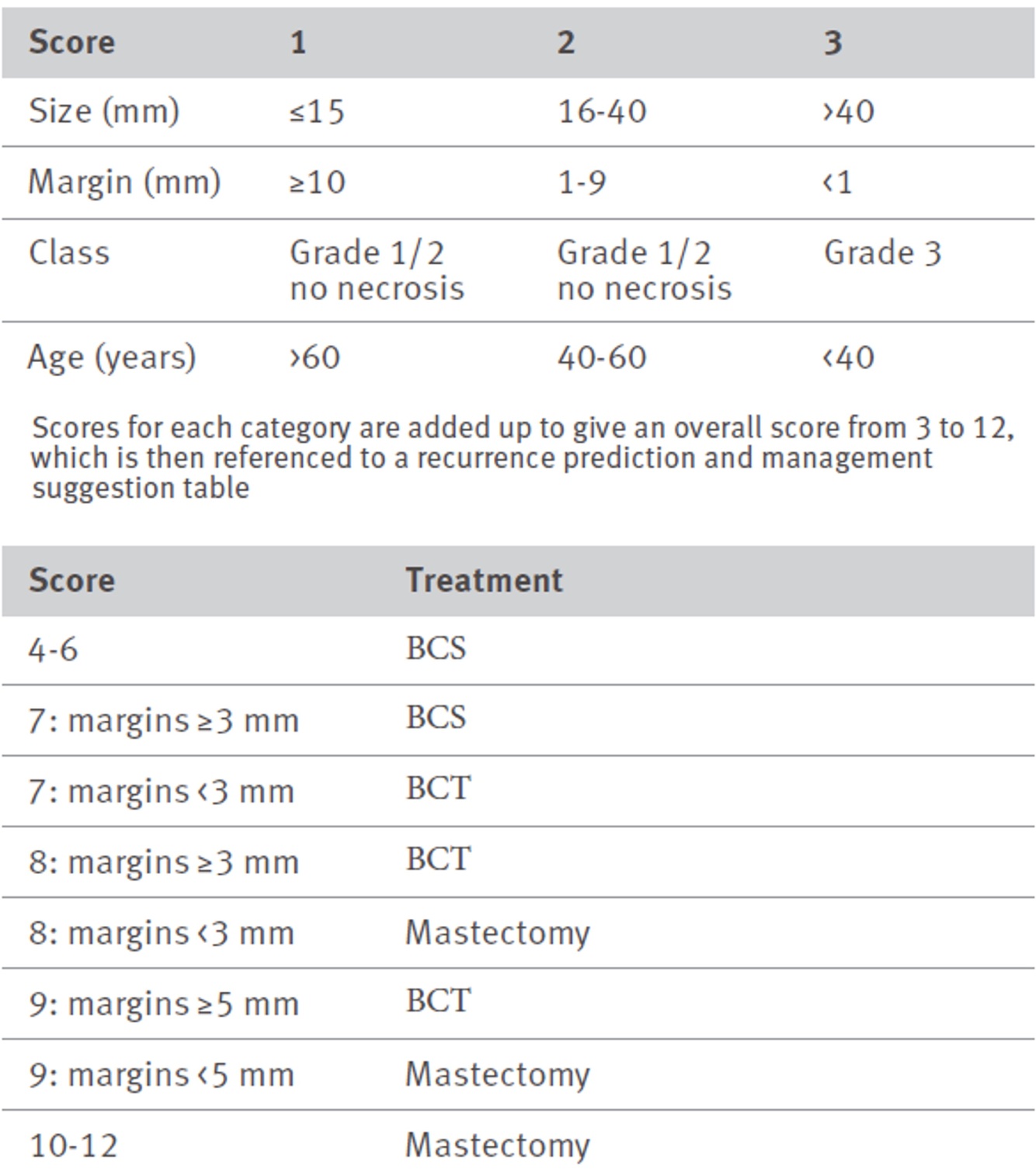 -Some author suggest treatment base on VNPI; BCS alone in low risk, BCS+RT in moderate risk and mastectomy in high risk