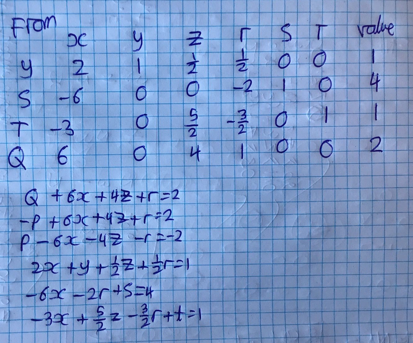 What are the final set of equations given by your tableau?