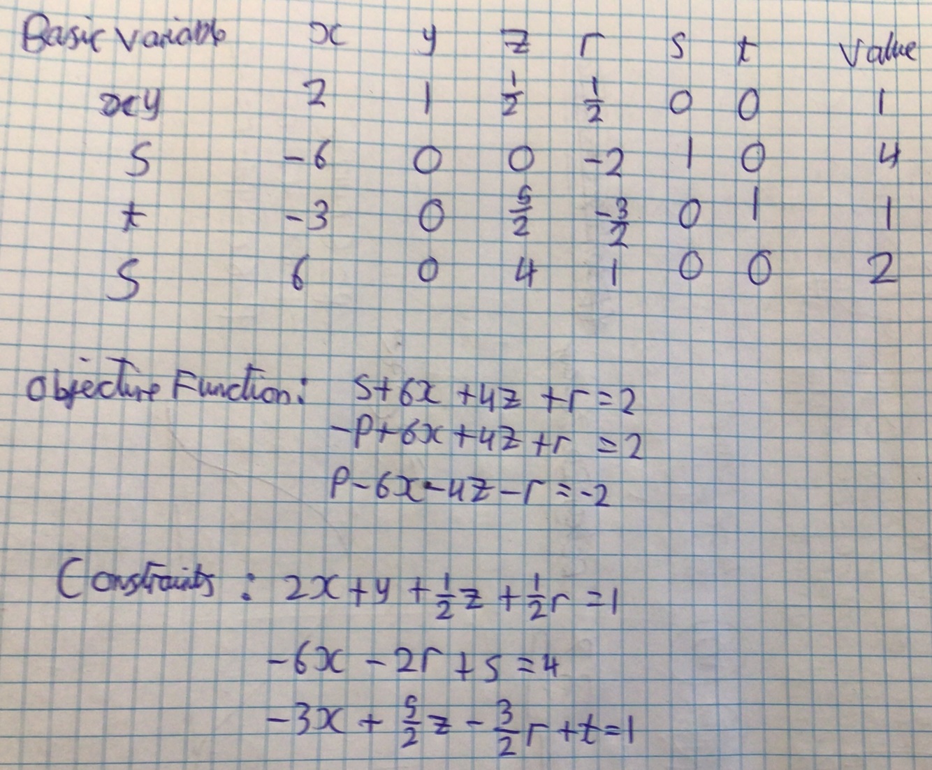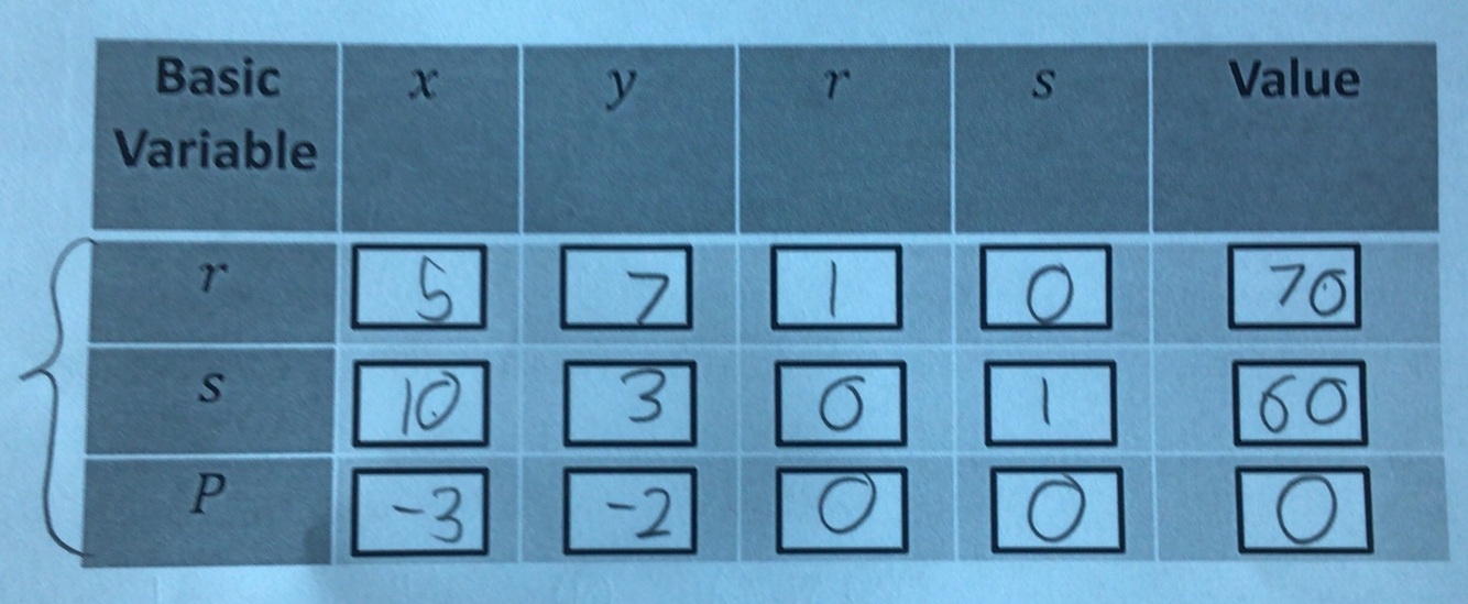 You then dill in each constraint in the tableau inputing 0 when there isn’t that variable