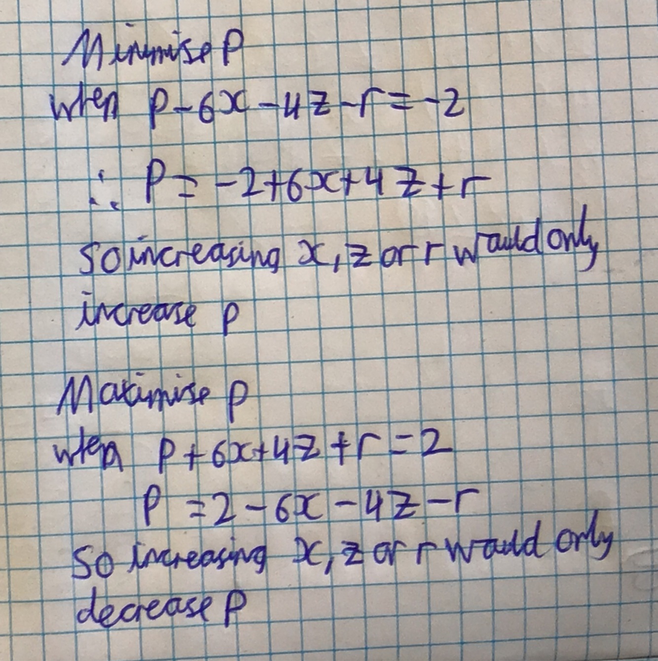 You write your objective function =0 with the P being +