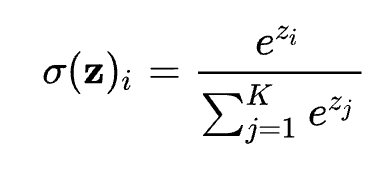 The formula is shown below, where there are K values you’re trying to predict, each has a corresponding value z that needs to be passed through the softmax.