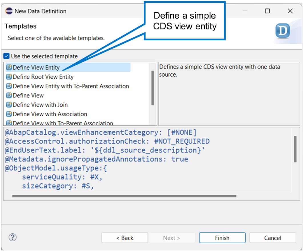 Yes, you can simply right-click on “Data Definitions” under the Core Data Services node in the Project Explorer, then select “New Data Definition”.