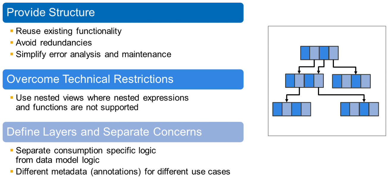 Layering of the data model, such as in the ABAP RESTful Programming Model, where consumption views are defined on top of data model views.
