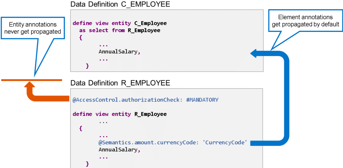 Entity annotations: Applied to CDS views and entities.