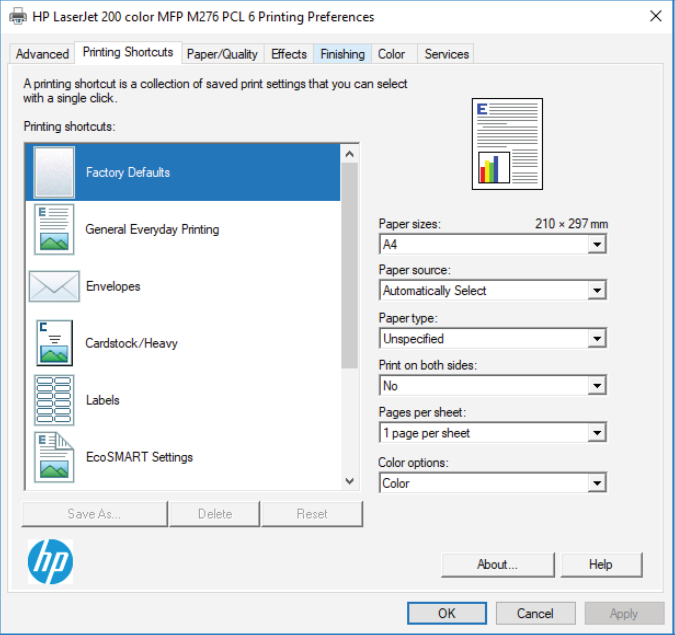 are about how you want to print a document on that printer.