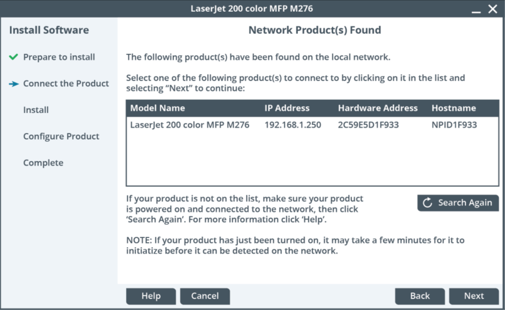 appropriate print driver will normally be selected and installed when the print device connection is detected.