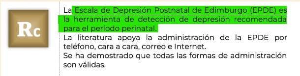 ¿ Cuál es la escala recomendada en el periodo perinatal para detección de depresión postnatal ?