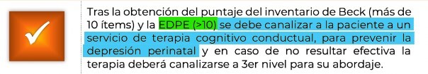 ¿ A partir de que puntaje de la escala EPDE se debe referir a la paciente a Terapia Cognitivo Conductual ?