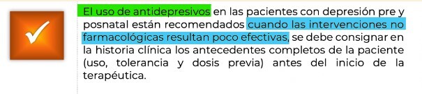 ¿ Cuándo se debe implementar el uso de antidepresivos en pacientes con depresion pre y posnatal ?