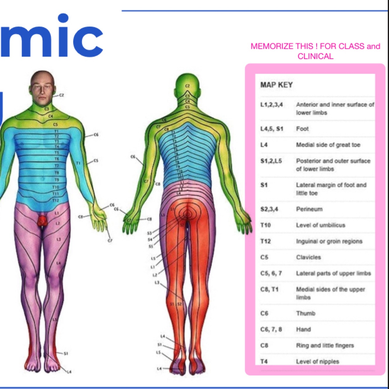 Dermatome levels: Inguinal or groin regions