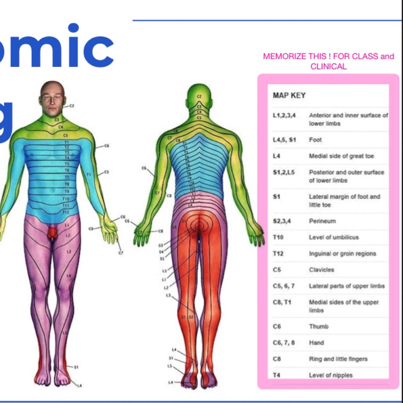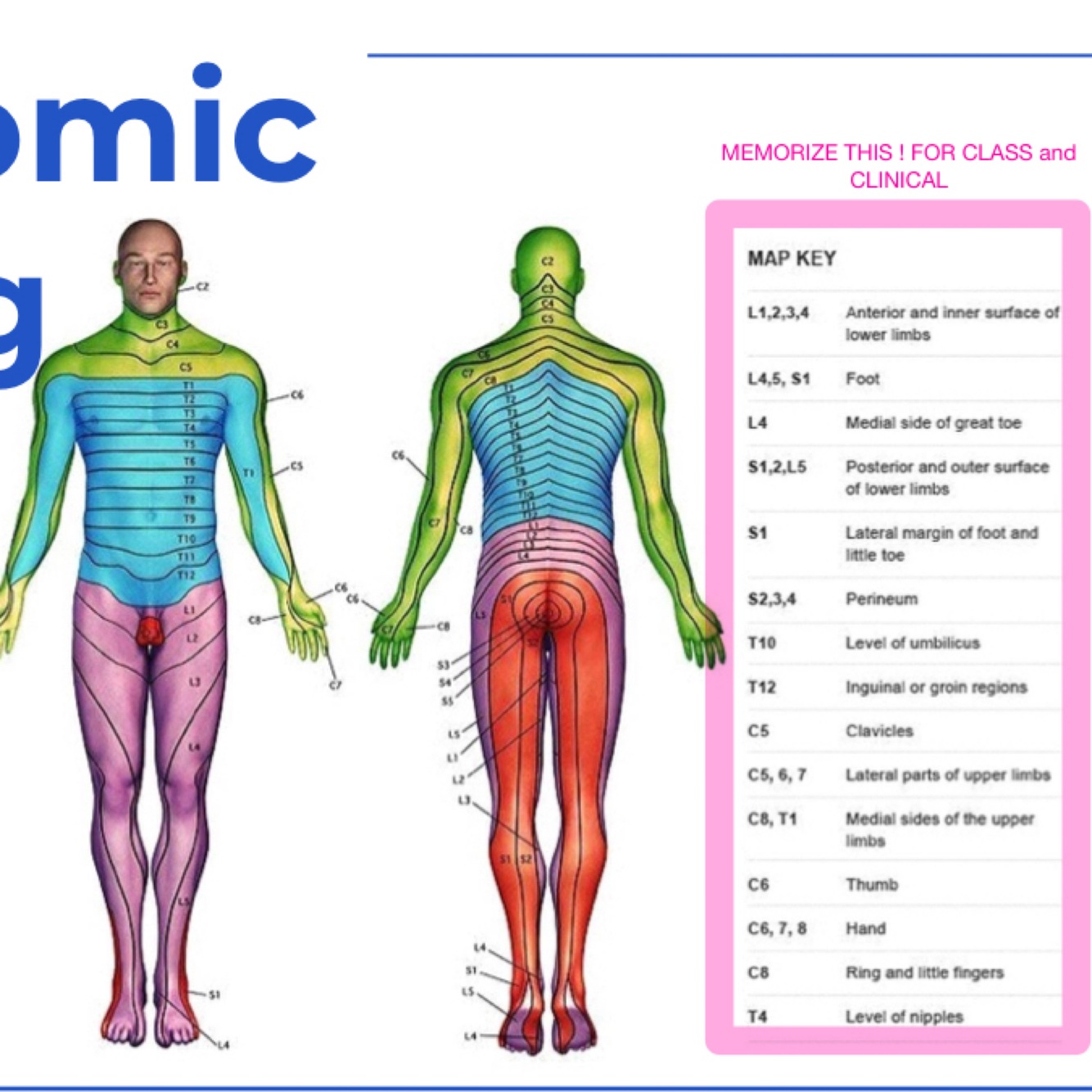 Dermatome levels: Level of umbilicus