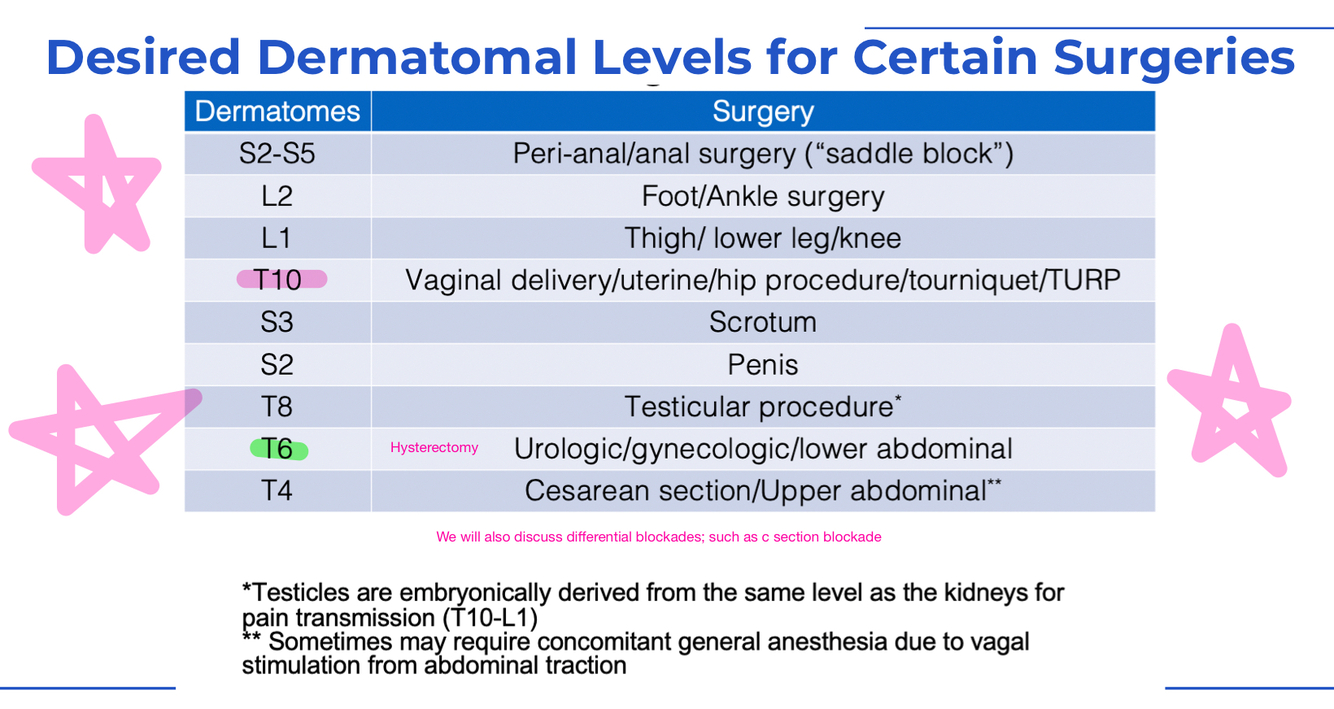 What to block for: Vaginal delivery, uterine, hip, tourniquet, TURP surgery
