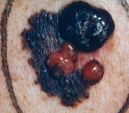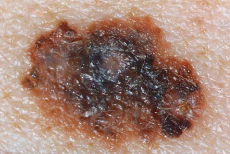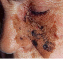This variant of melanoma is a large pigmented macule that develops in fair-skinned elderly persons who are chronically exposed to solar UV light. It is a flat, irregular, brown-to-black patch that may cover a large part of the face or dorsal hands.