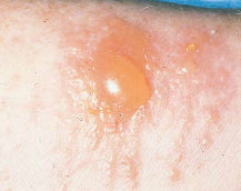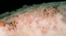 This condition is a cell-mediated delayed hypersensitivity to exogenous sensitizing agents. Following exposure to an agent, the site of contact becomes intensely pruritic, after which erythema and small vesicles rapidly develop.