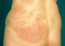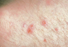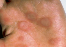 The medial thighs and flexor aspects of the forearms are most commonly affected.