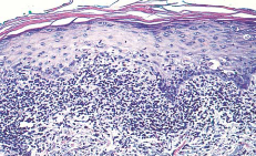 (image displays band-like lymphocytic infiltrate at the dermal-epidermal junction)