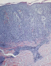 This condition is a variant of cutaneous T cell lymphoma. The most important histologic feature is the presence of CD4+ lymphocytes in the epidermis (“epidermotropism”).