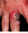 1) disintegration of lower regions of epidermal basal cells (epidermolytic)