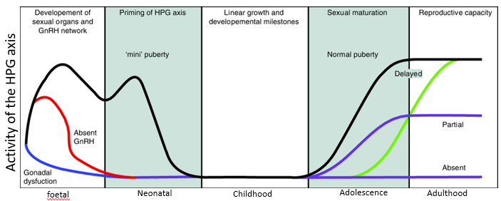 HPG axis is transiently activated after birth (mini-puberty), after release from restraint by placental hormones