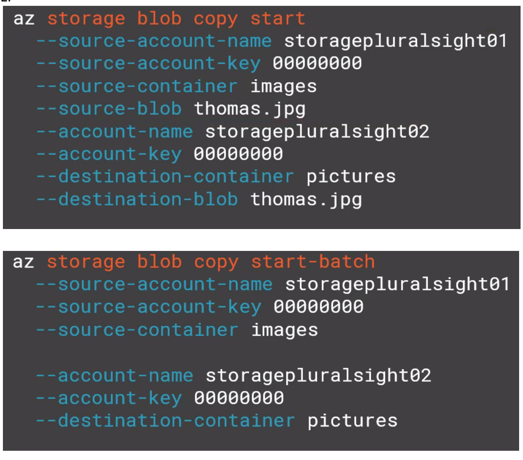 What is the Azure CLI command for copying between Storage Accounts and Containers?