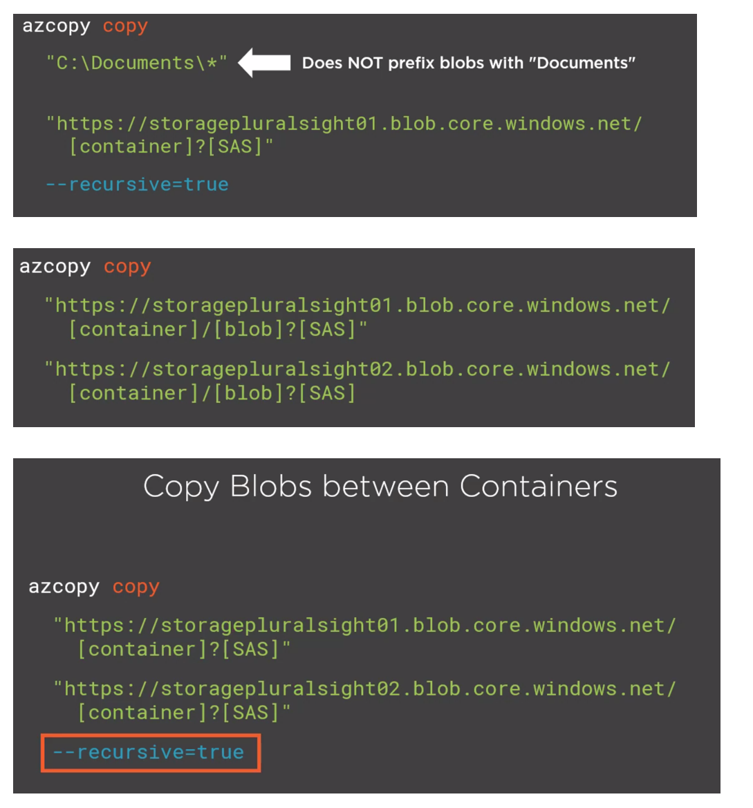 azcopy copy “Sourcepath” “targetpath” –recursive=true