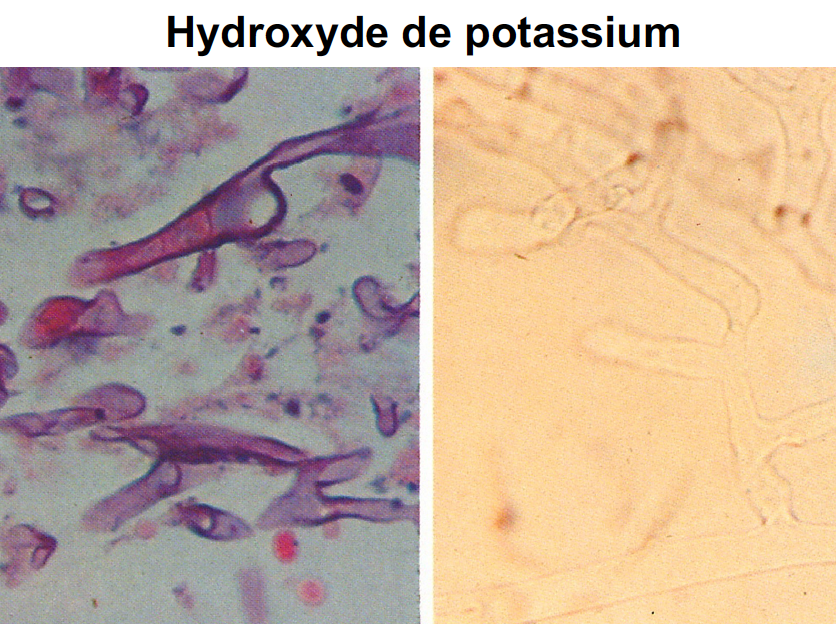 Décrire l’examen direct par hydroxyde de potassium et son utilité